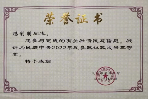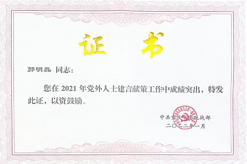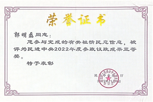 我校教师郭明磊荣获 “民进全国参政议政工作先进个人”称号